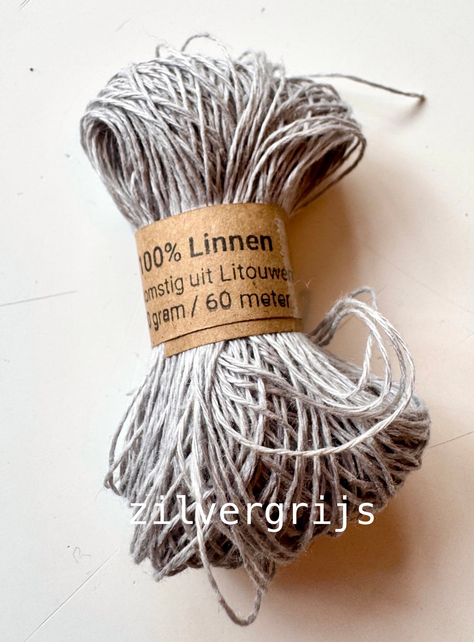 Prachtig linnen garen in bolletjes van 60 meter . Ragfijn en regelmatig gesponnen draad met een glans alsof het zijde is.